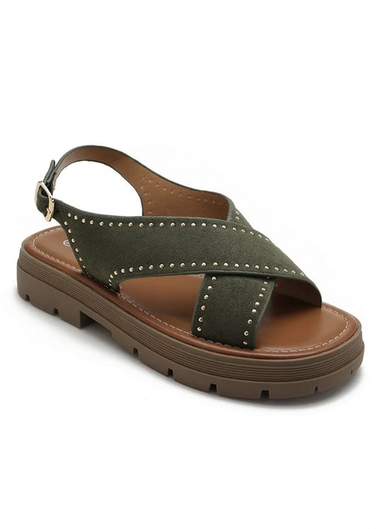 Sandalette plateforme clou doré Kaki