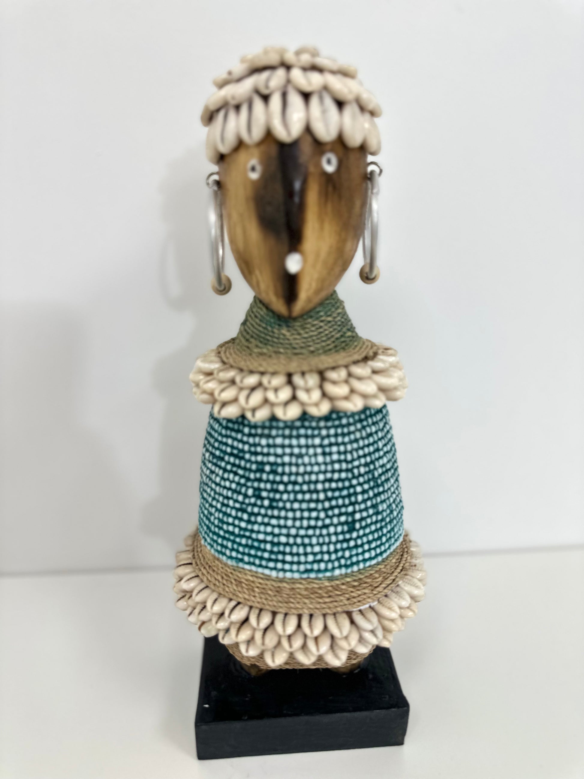 POUPÉE TRIBALE BALINAISE – TURQUOISE & COQUILLAGES – GRAND MODÈLE